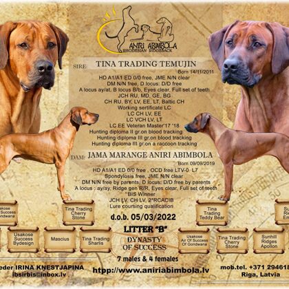 RHODESIAN RIDGEBACK kennel ANIRI ABIMBOLA Riga Latvia